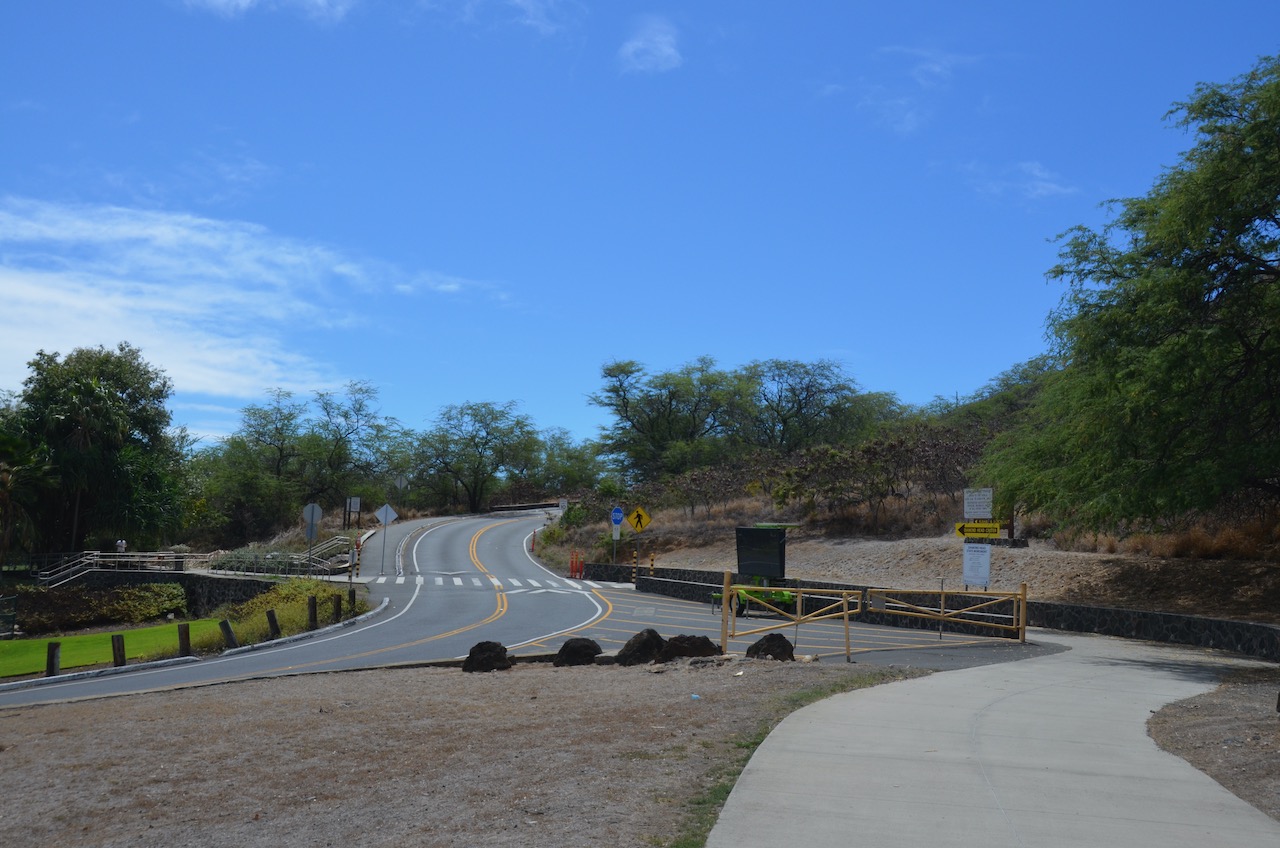 We continued uphill at a gradual grade as we navigated towards the Diamond Head Crater parking lot. The route had a proper side walk through the whole way and was broad enough at most areas for pedestrian traffic flow both ways.