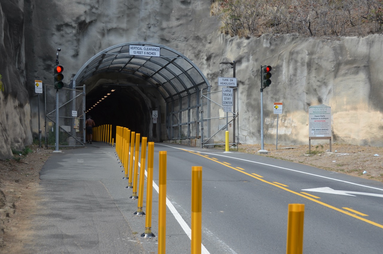 We passed through the tunnel of the Diamond Head wall. The tunnel itself was a single lane vehicle tunnel. It was very cool by comparison in the cool tunnel; a welcome respite from the heat of the walk so far.