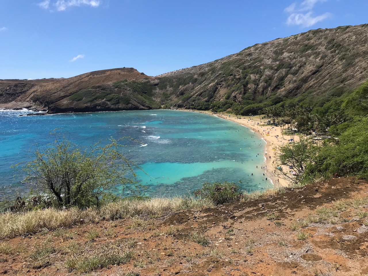 We descended into the Hanauma Bay down the gradual ramp that led down to the beach. The space was a welcoming location for beach goers.