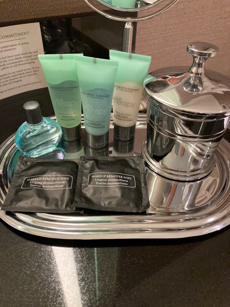 The toiletries were Gilcrest and Soames branded toiletries. I used the body lotion but I didn’t use the shampoo or conditioner. It was convenient having additional Q-Tips available as spares if needed.
