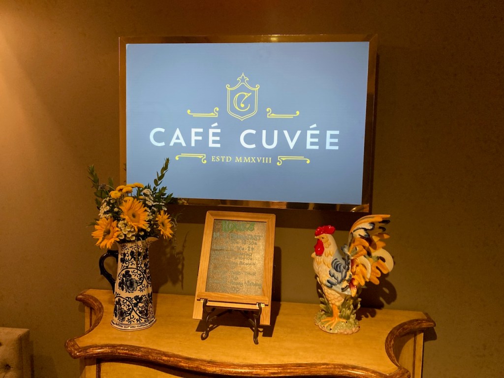 The Café Cuvée is the all day hotel dining restaurant and the only restaurant on the property. While it is an all day restaurant, the restaurant does take a small break between 2 PM – 5:30 PM when it is not open.