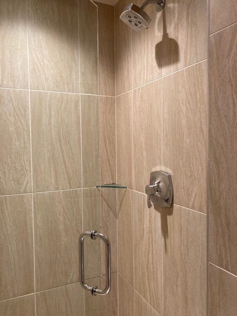 The bathroom also offered a bathtub, which was a nice feature but not something that I would have typically expected for a business stay.