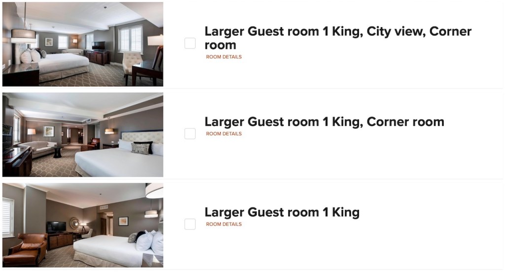 The hotel offers a few rooms in the Marriott Bonvoy Suite Night Award pool. Marriott Suite Night Awards are awards give to Marriott Bonvoy Platinum, Titanium and Ambassador level members for passing certain stay thresholds. The Suite Night Awards confirm the guest into an elevated room category; typically 5 days in advance of any stay.
