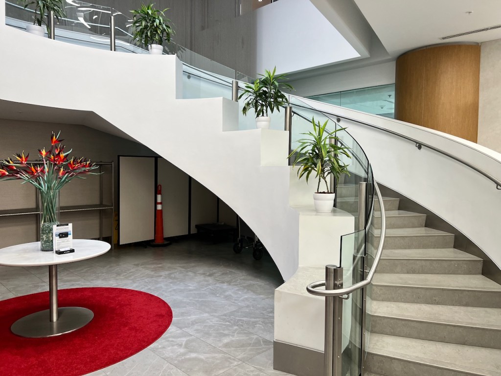 There is a grand looking white staircase in the reception area which made a nice statement, but I didn’t actually see anyone using it. It had an institutional look to it, versus a grand elegant appearance. We took the elevator up one level to the top floor to the lounge level.
