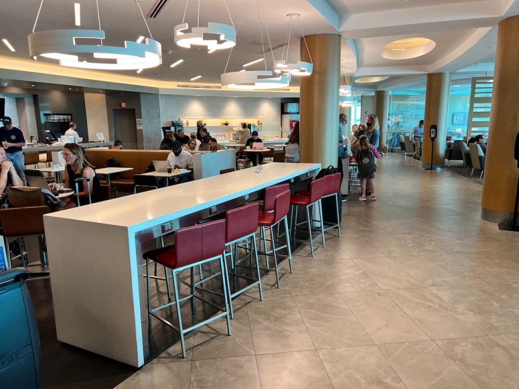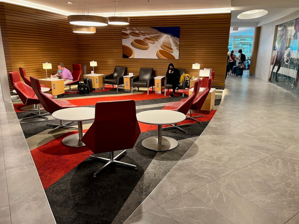 I’ll hand it to American Airlines for imagining a better use of the reception space. Most lounge entries feature less than exciting corridor space that doesn’t offer any seating. Here, they’ve actually used the space to invite passengers into the lounge.