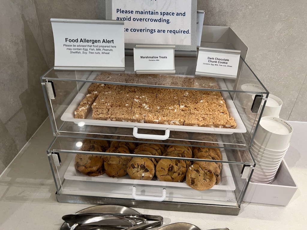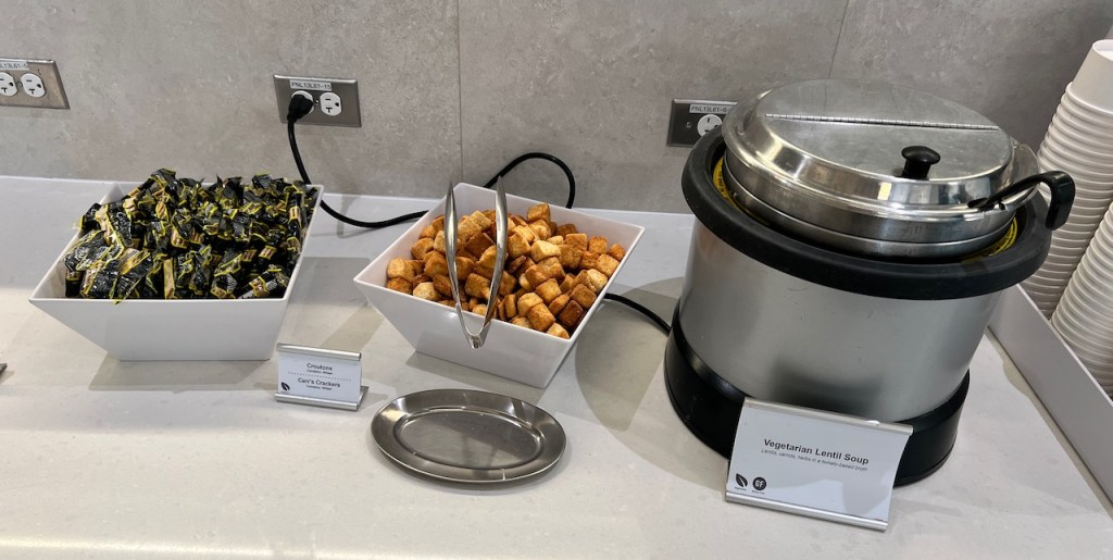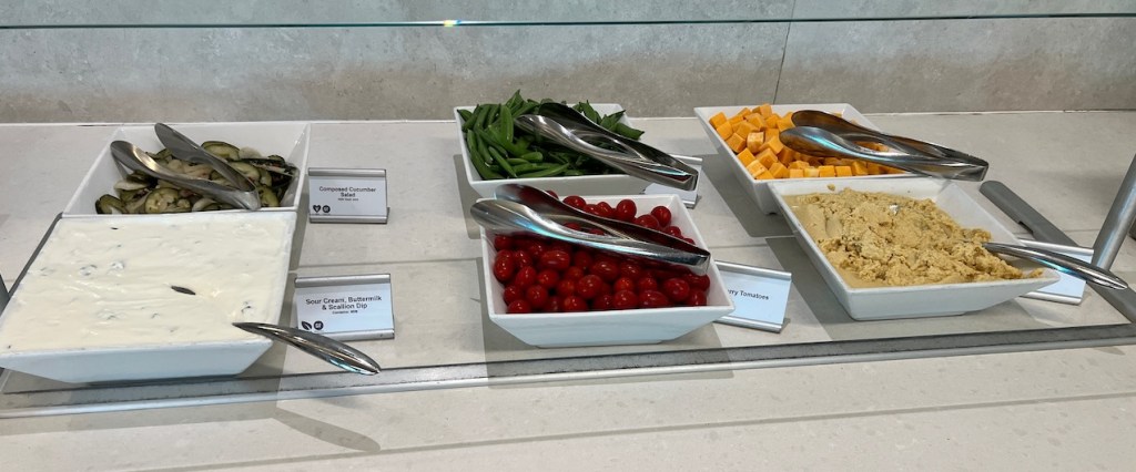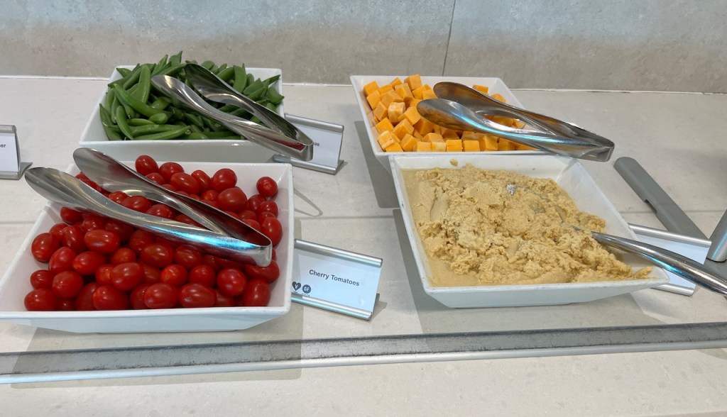 The Admirals Club did not feature a whole lot of complimentary food between meal times. It appeared that some of the main food serving hours were limited to set meal times. As we were departing, the lunch food was being put out. During our stay, there were some light snacks offered.