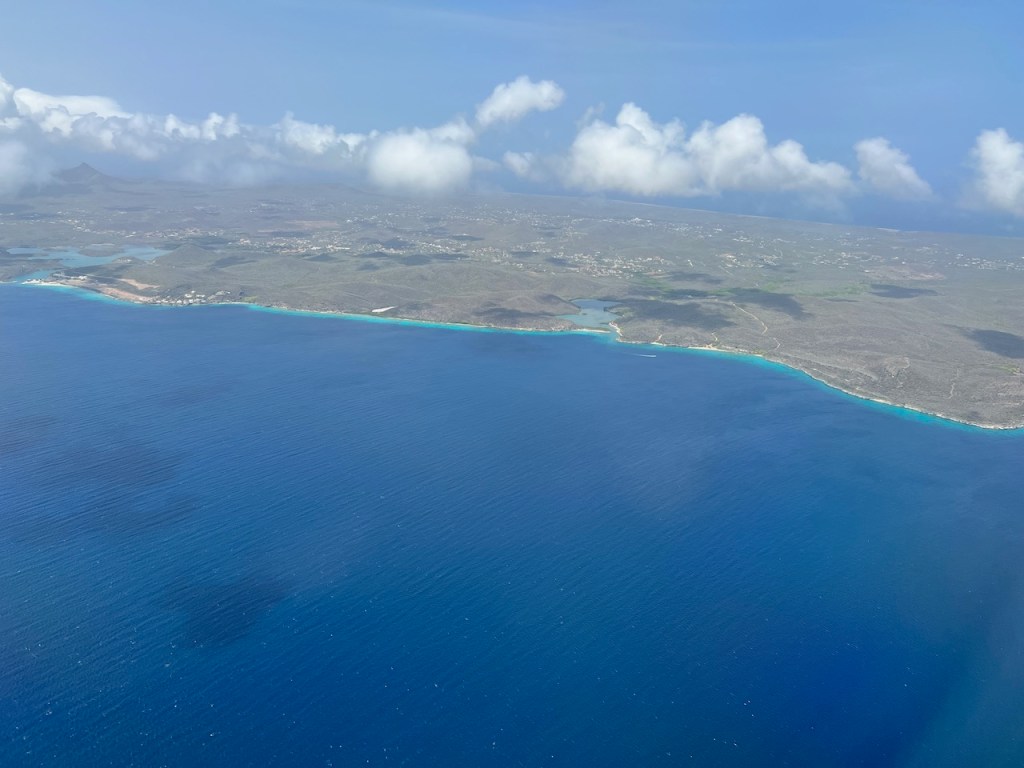 After several hours of light, we started the descent into Curaçao. It was a little cloudy on our descent, but we got our first glances of the island. The island is almost completley surrounded by an island ing of emerald blue waters and coves.