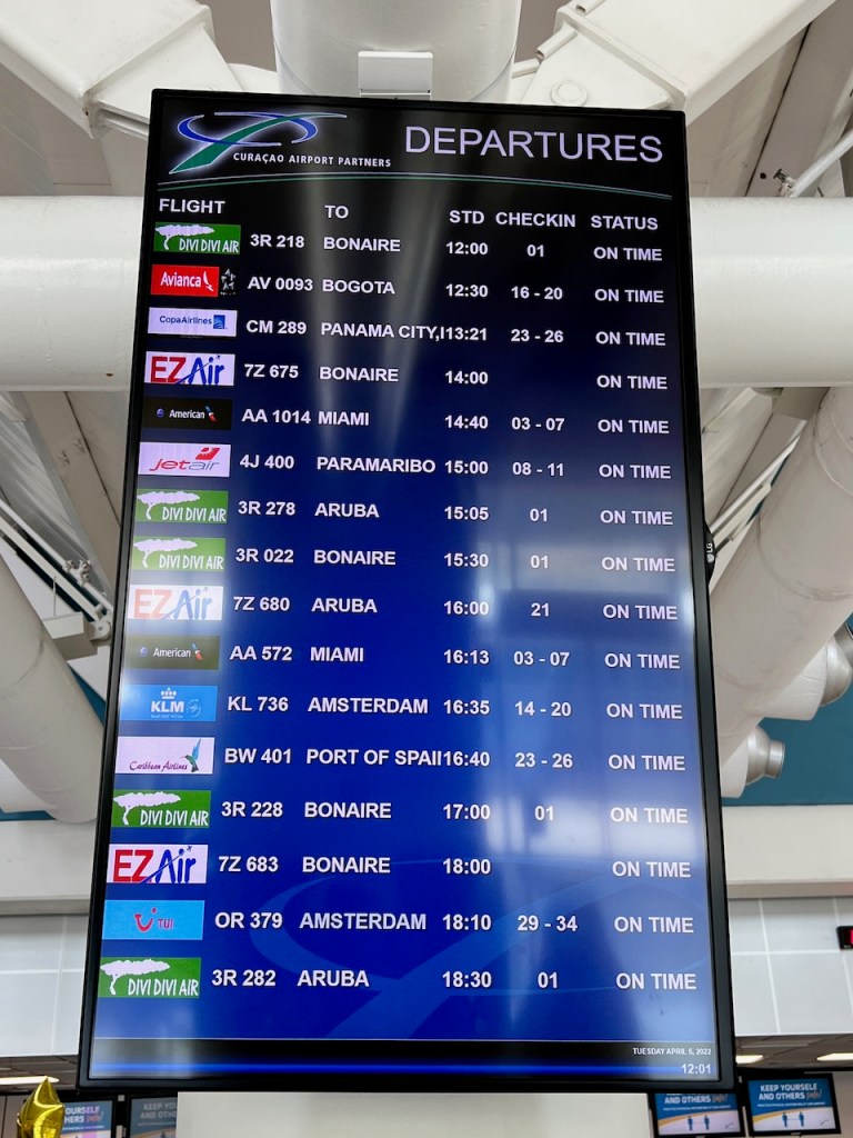 Perhaps the most interesting part of the public departures hall was the interesting flight display monitor. The board revealed a whole host of Caribbean flights to some interesting regional destinations in neighbouring Aruba and Bonaire.