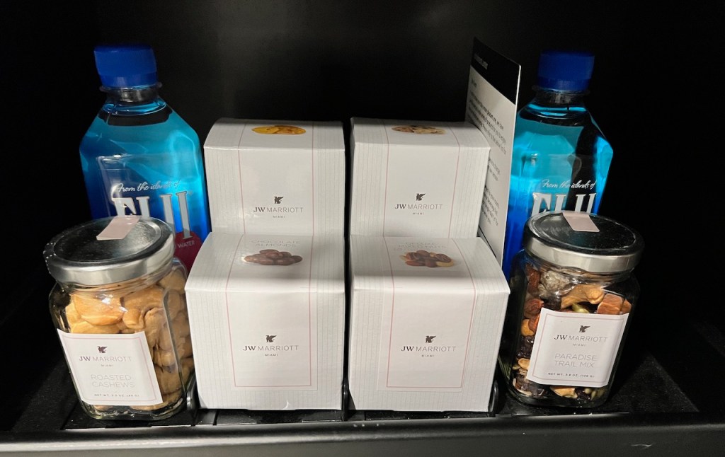 Being a JW Marriott, the room was well appointed with a full mini bar. There were snacks available for purchase, in addition to Fiji water.