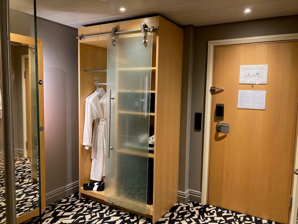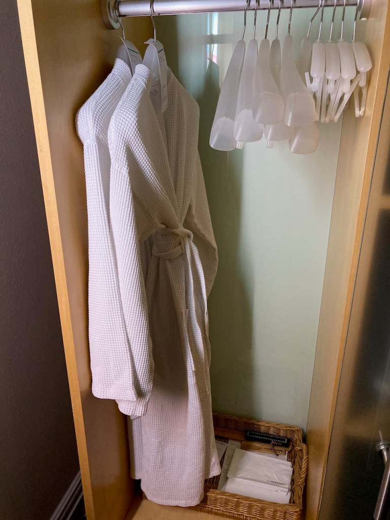 Immediately upon entering the room, there was an armoire suited for hanging clothes and jackets. There was a small foyer area that was perfect for room arrivals; an area to take off your jacket and hang it up.