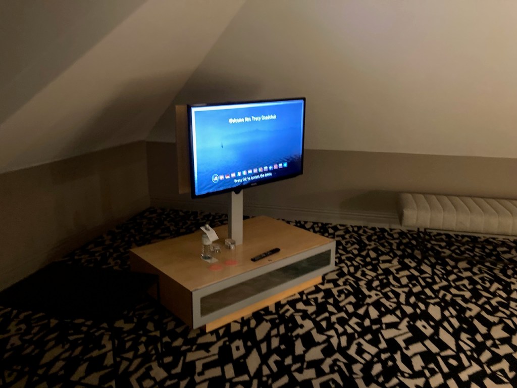 There was a small television just off the bedroom, that allowed you to watch from bed at an angle.