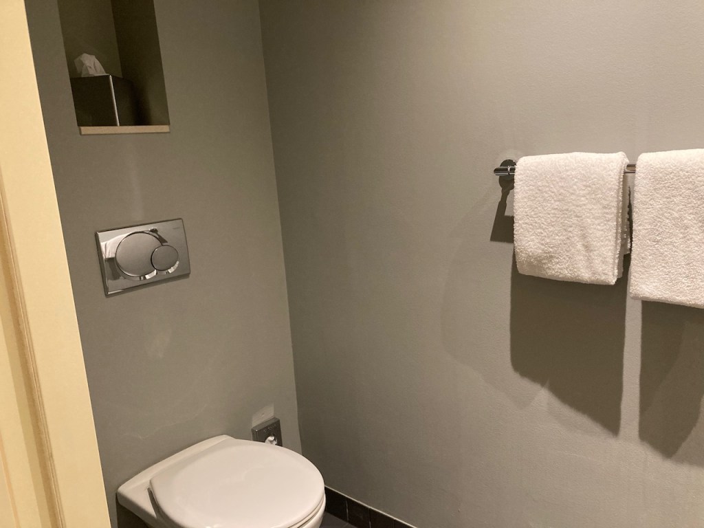 Immediately to my left on the entrance was the rather industrial entrance to an bathroom. The ensuite bathroom was situated just across from the entrance. Initially, I thought that this was a closet, but it turned out to be an ensuite bathroom.