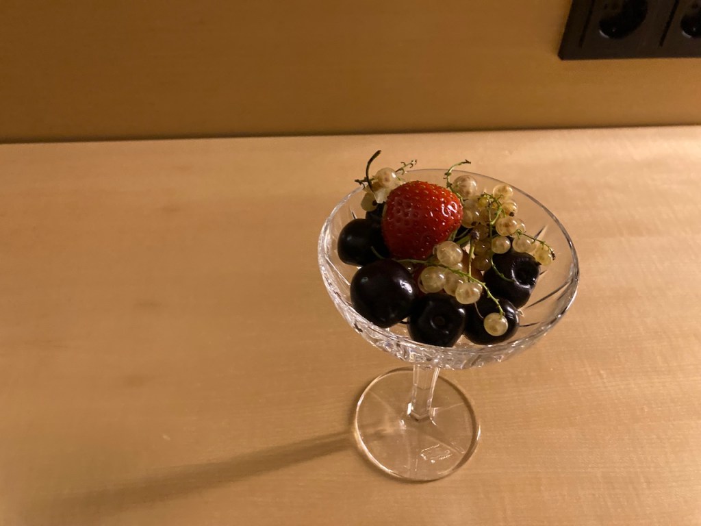 The hotel also offered a welcome amenity of some fresh fruit, which was served in an upright glass.