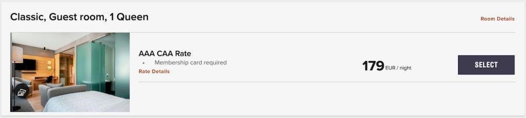 The hotel participates in the Marriott Bonvoy reward program. Under the new variable pricing method, rooms are available for approximately 55,000 to 57,000 Marriott Bonvoy points per night. If you value Marriott Bonvoy points at 0.005 cents a point, you would have to have a hotel rate of 280€ / $285 USD in order to come out ahead redeeming points.
