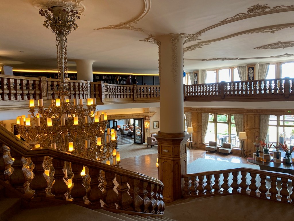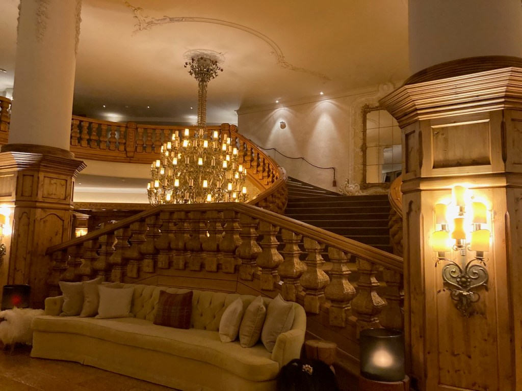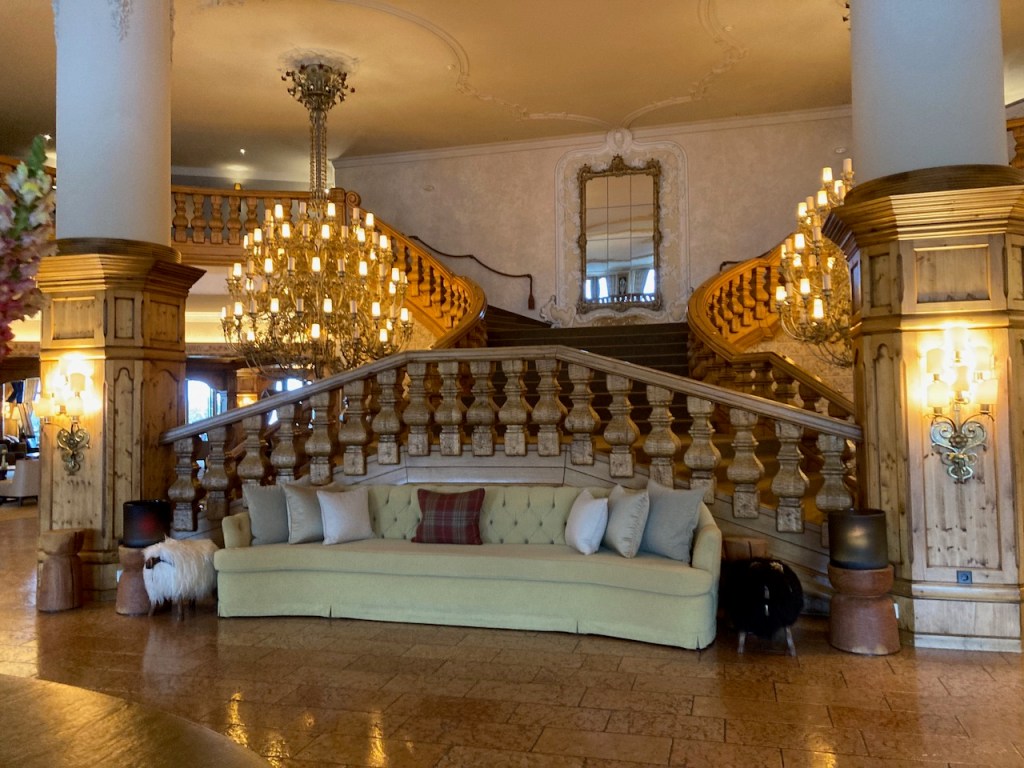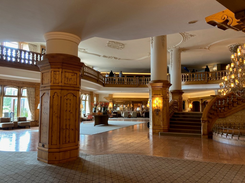 The lobby is a grand and opulent space that was beautiful by every stretch of the imagination. The lobby was styled similar to a mountain manor or luxurious chalet. A series of double staircases wrapped their way around the double level space.