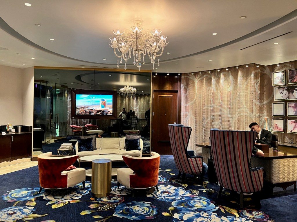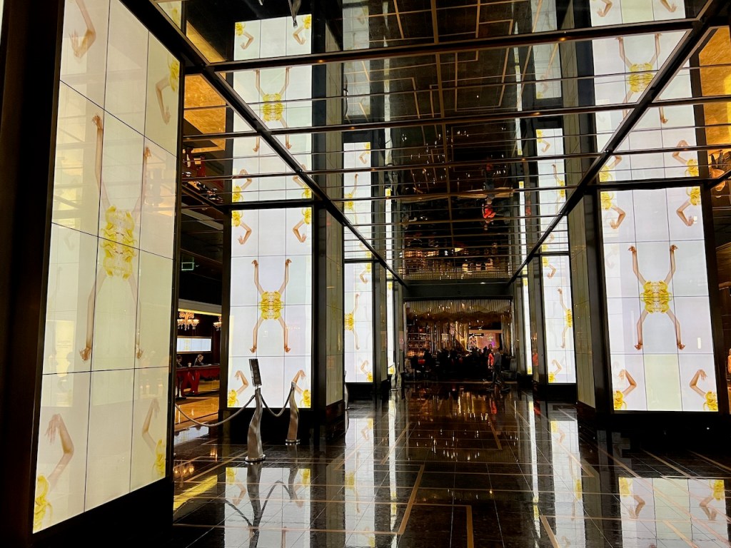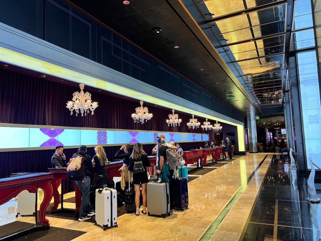The lobby is marked with a giant light standard display with interactive columns with monitors on it. The general check in area offers long desks that were heavily manned. At times, we saw over 12 reception agents checking in guests.