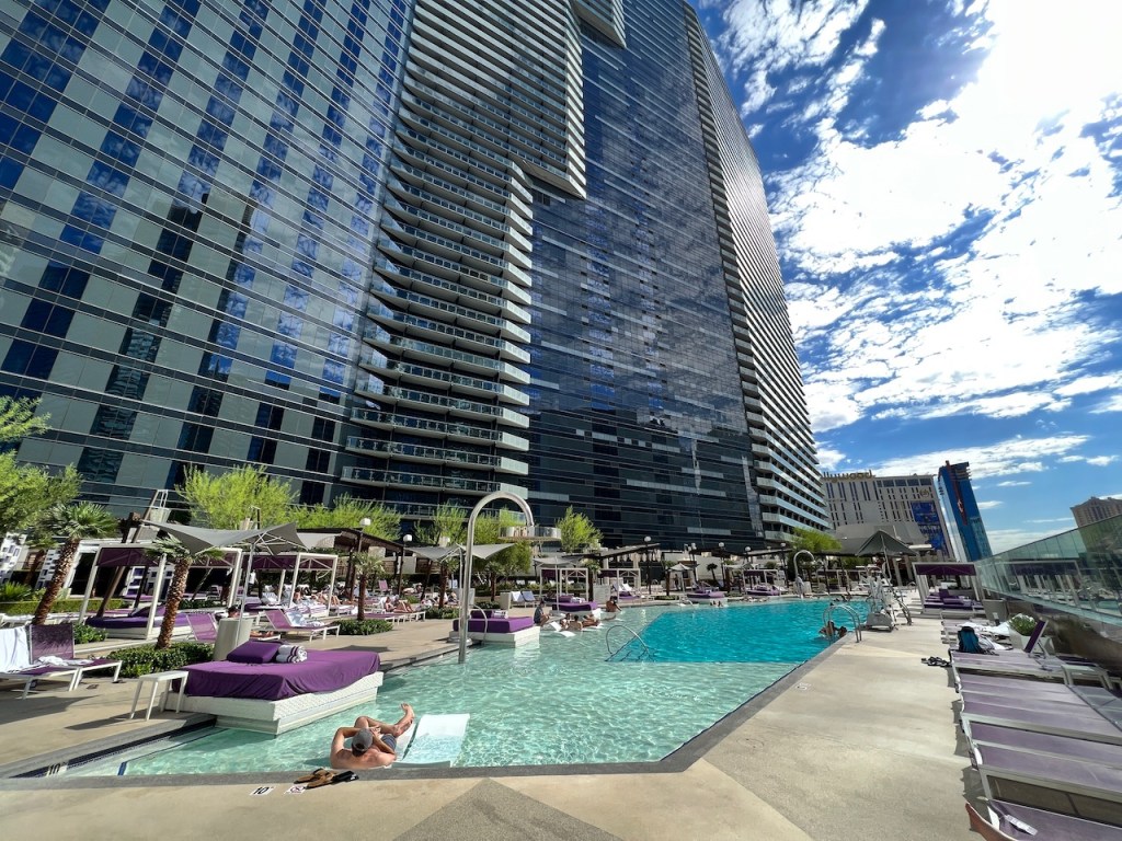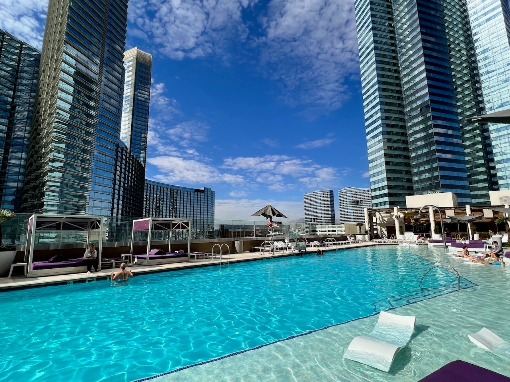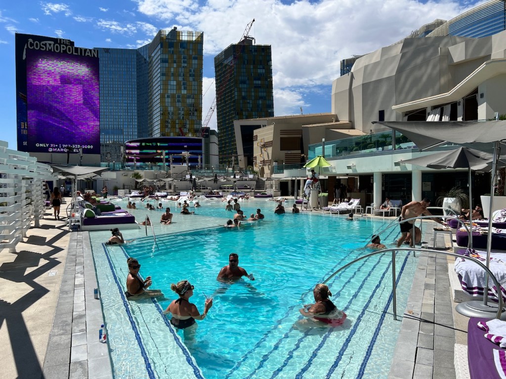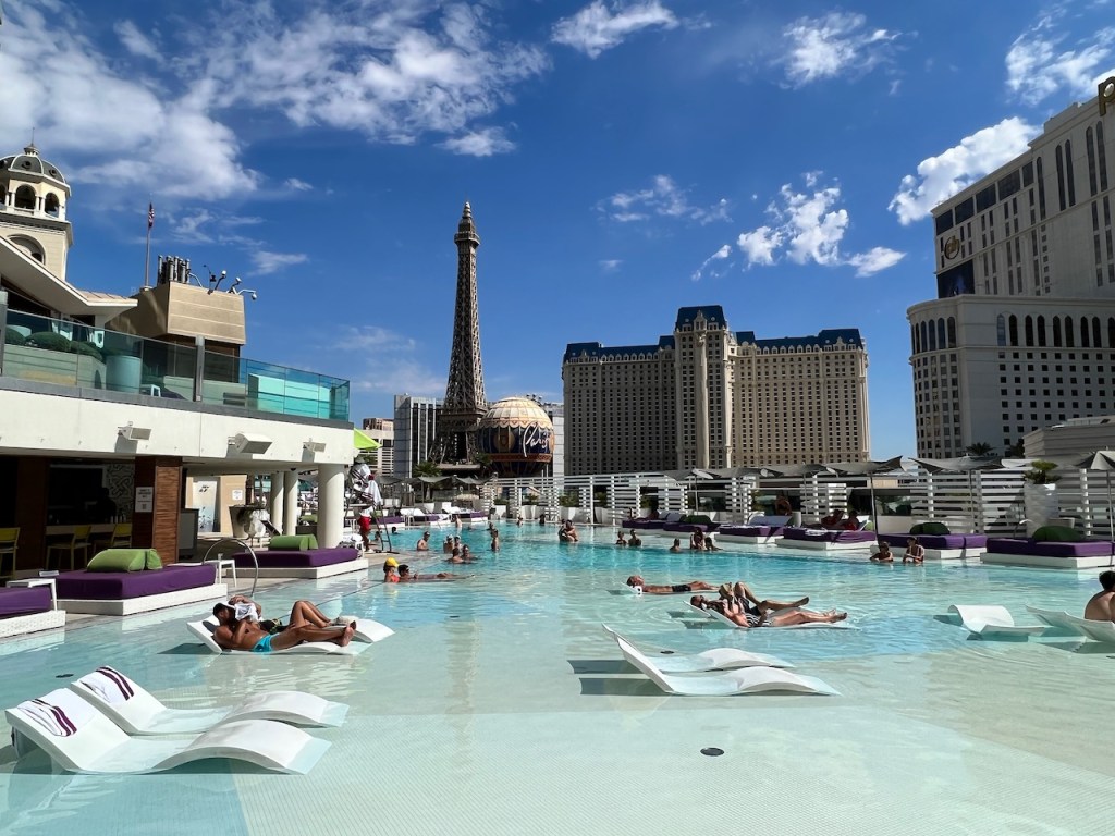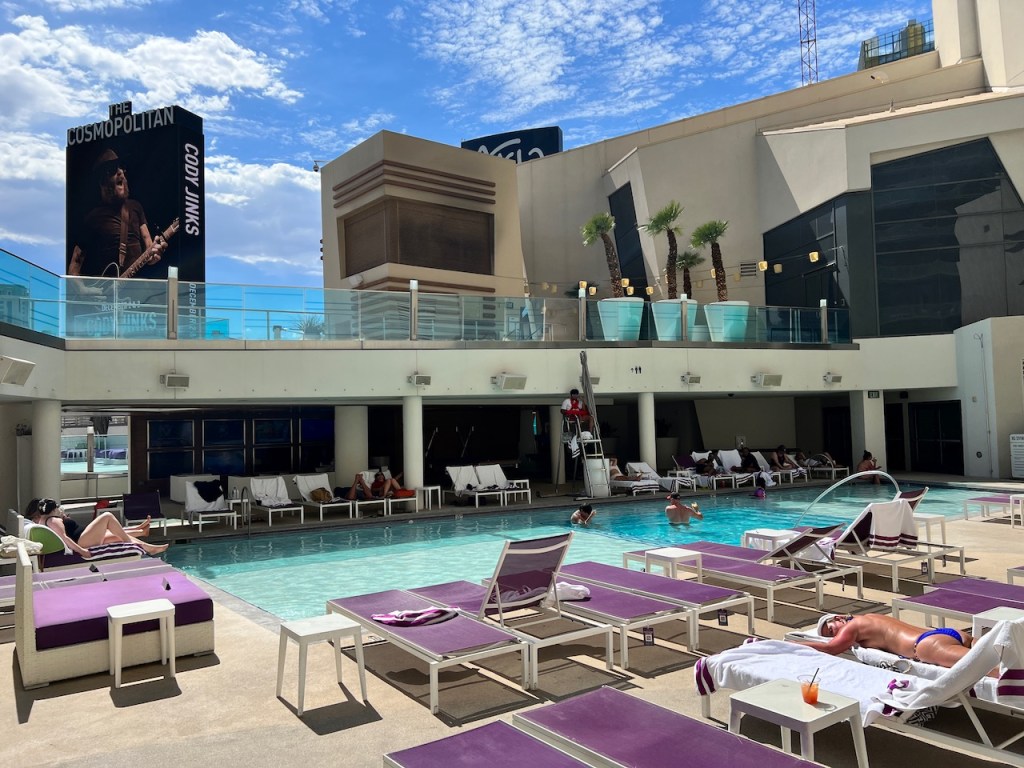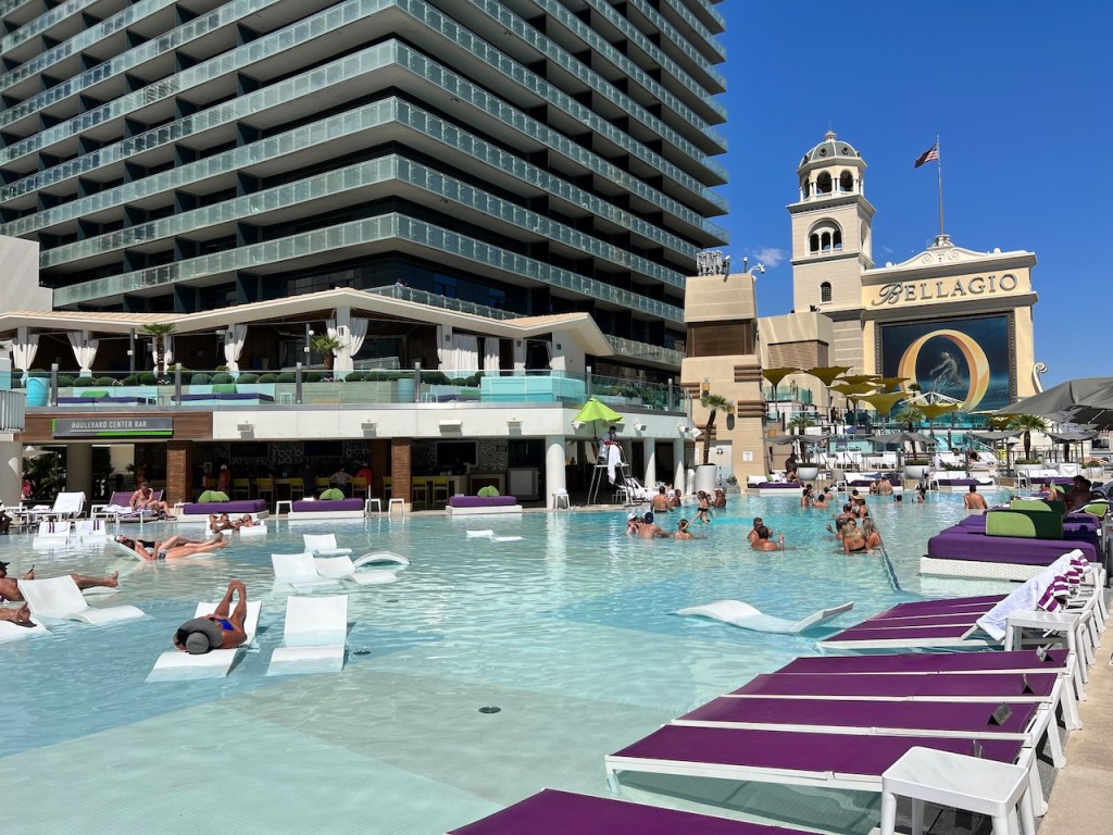 We spend the morning of our last day at the Boulevard Pool. The Boulevard Pool faces the Las Vegas Strip and has a pretty unique view of the sights of the Las Vegas Strip.