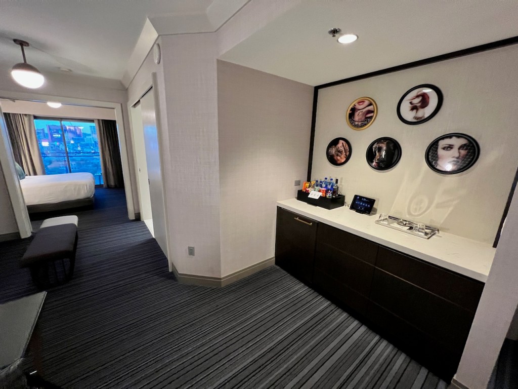 The room also offered a separate fridge for “other beverages”. It was great to have access to a fridge, since many Las Vegas hotels don’t offer them or provide them only for “medical reasons”. We were able to self cater some champagne into this area, in order to enjoy on the outdoor terrace.