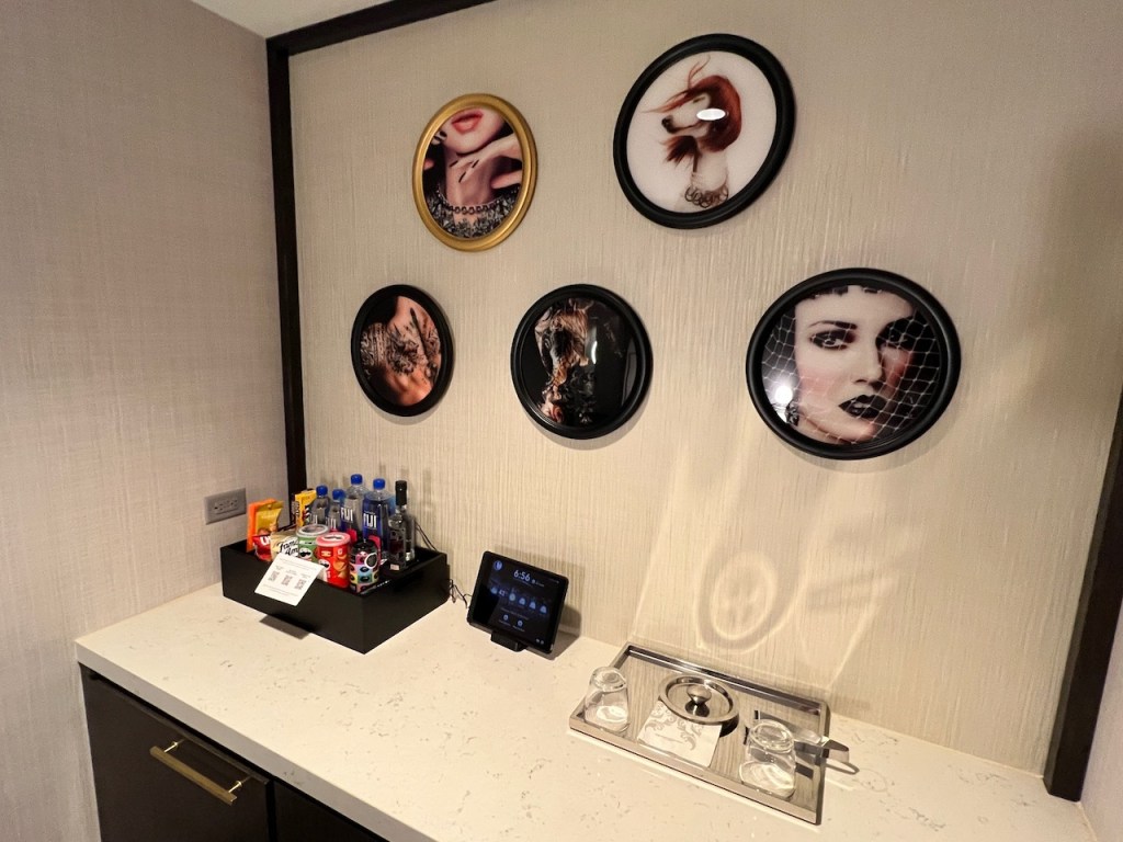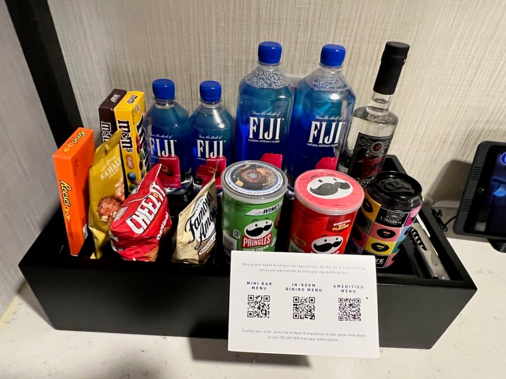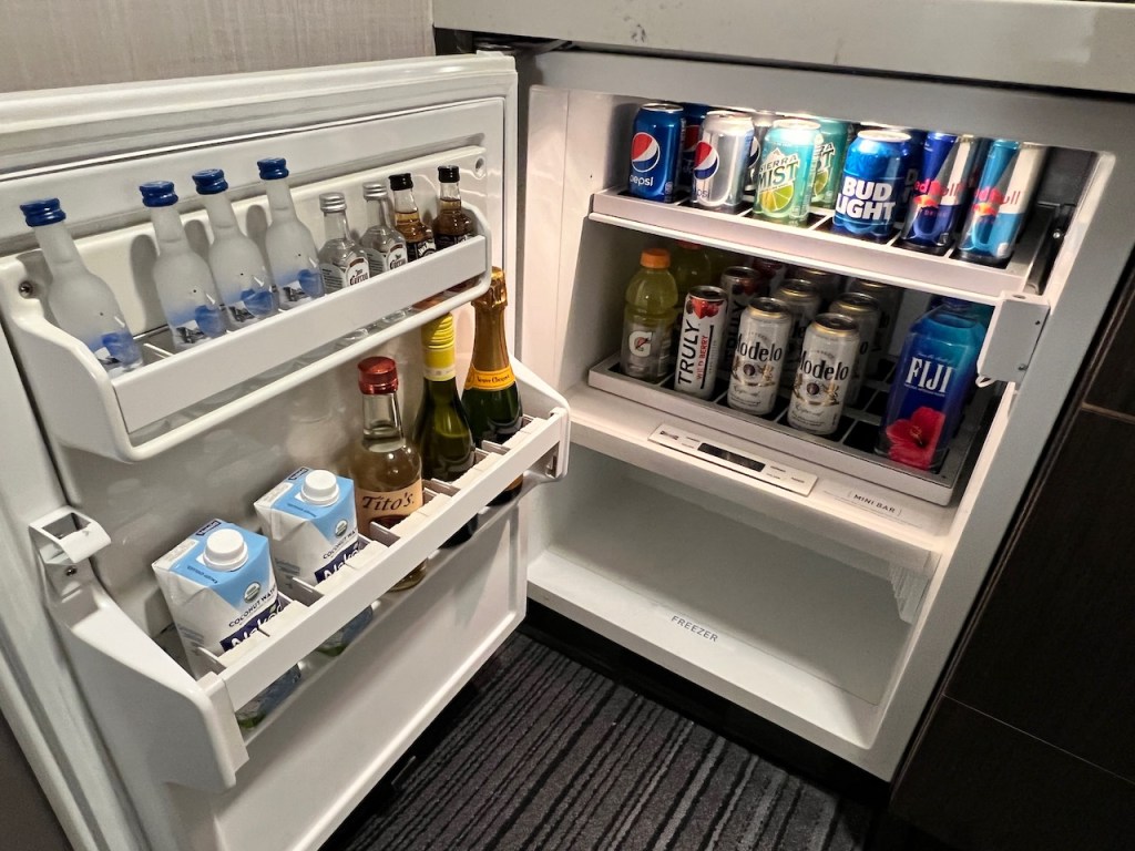 The living room area offered a fully stocked sensor mini bar. There were also a variety of snacks available from the mini bar.
