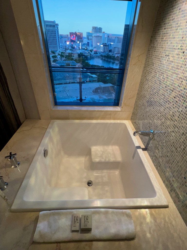 As with all things last Las Vegas, the view was much better at night. There is nothing like the viewing the Bellagio fountains of the comfort of your suite enjoying your favourite champagne.