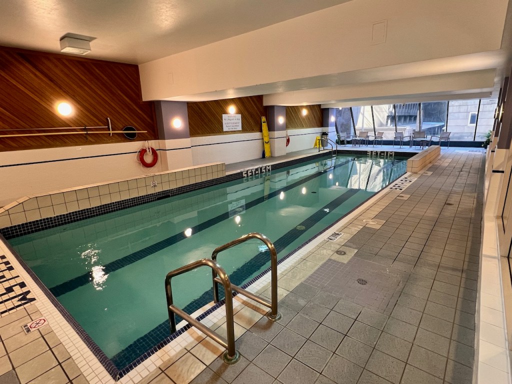 The hotel offers an indoor pool. What makes this feature unique is that the pool happens to be a salt water heated pool. While it’s not a super large space, it’s perfectly suitable for a series of small laps to shake off the airplane jet lag. I have also never seen children in the pool, which is something that’s unique about this particular hotel pool space.