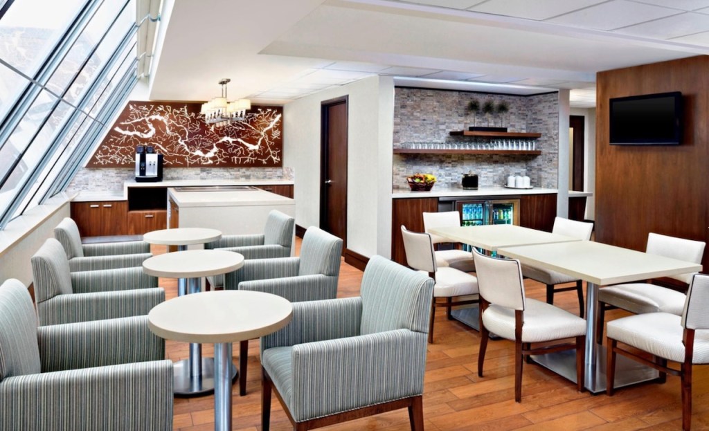 The Sheraton Club Lounge at the Sheraton Ottawa Hotel is situated in a bright space lit through atriums on the top floor. In addition to couches, there was ample light in stark contrast to the lobby restaurants. Since I couldn’t get in there on this visit as a result of it being officially closed, I’ve borrowed a photograph courtesy of Marriott.