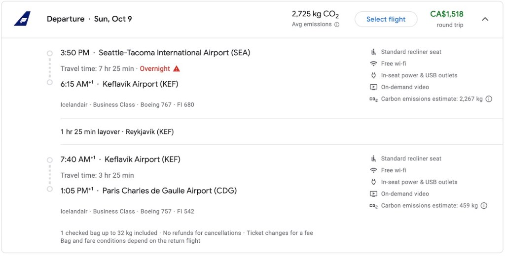While I was sitting around in the early summer of 2022, I happened to notice a deeply discounted Icelandair Saga Business Class sale for the fall of 2022 and spring of 2023. Icelandair was offering full business class tickets from nearby Seattle to most points in Western Europe for a cheap $1,500 CAD or $1,100 USD.