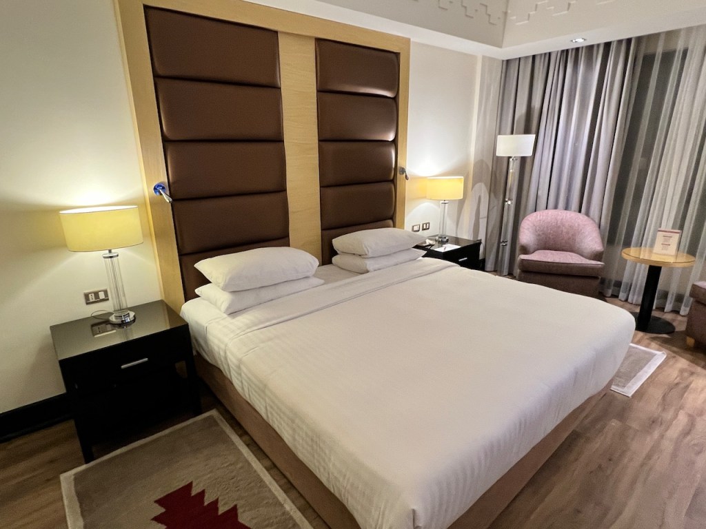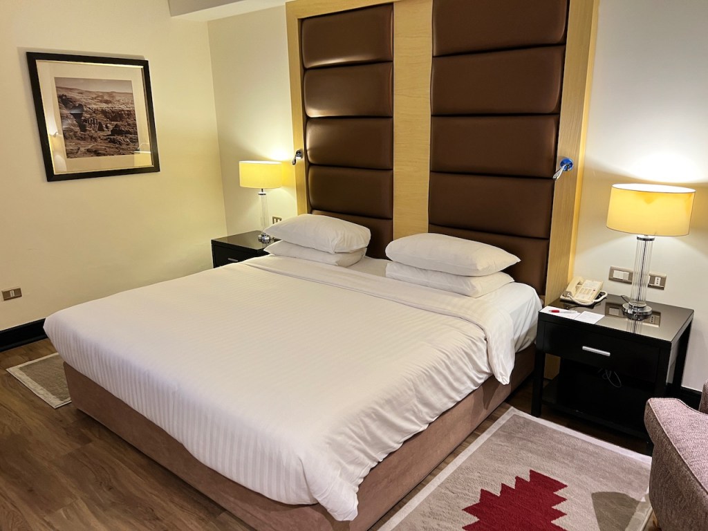 We were offered a small tea as a nice welcome drink. I always appreciate this as its something you never get when you’re on the work circuit back in North America. We were also informed that we had been given a Marriott Bonvoy Titanium soft upgrade to a nicer room from the base deluxe that we had booked, particularly a Premium Guest Room, 1 King, Petra Valley and Mountain View. While it wasn’t a suite upgrade, I’ll take any upgrade available over nothing at all. I appreciated the hotel’s efforts at recognition.