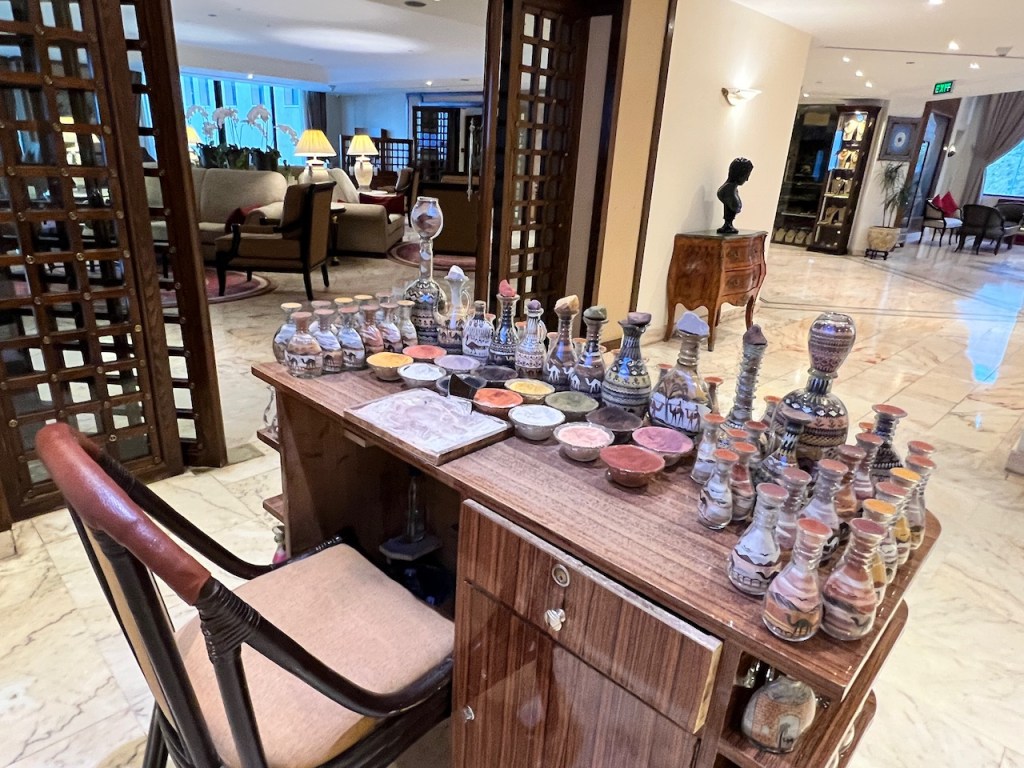 We were offered a welcome amenity of layered sand bottle with our name etched into it. While these were all over Jordan as a souvenir to purchase, I hadn’t ever been presented one as a welcome amenity. It was a pretty neat souvenir and one I actually brought home with me. It was so appealing, MrsWT73 wanted one of her own. It was selling for about 15 JOD ($21 USD) in the lobby bottle shop.