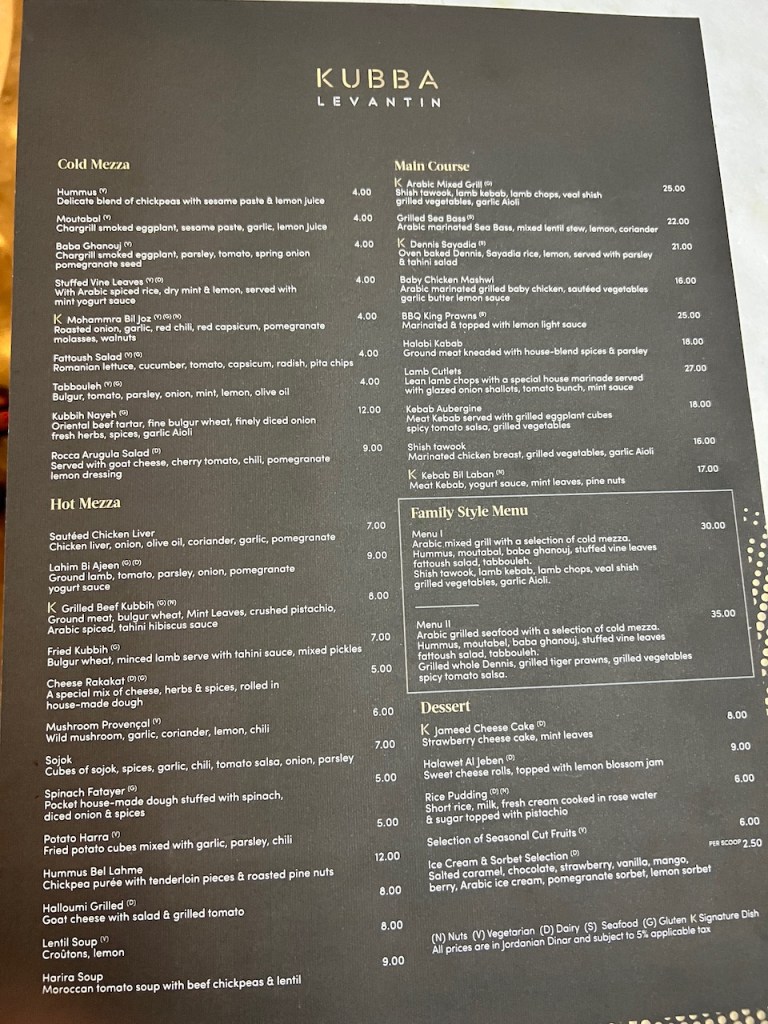 The menu at Amwaj was a set menu of several courses and was inclusive of starters, a main and a dessert course. The price point started at 33 JOD ($46 USD) up to 40 JOD ($56 USD).
