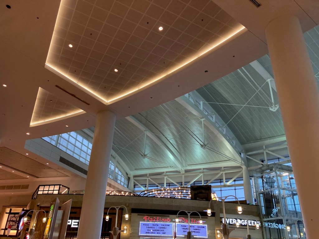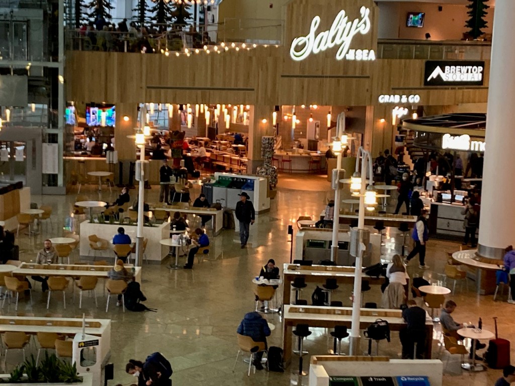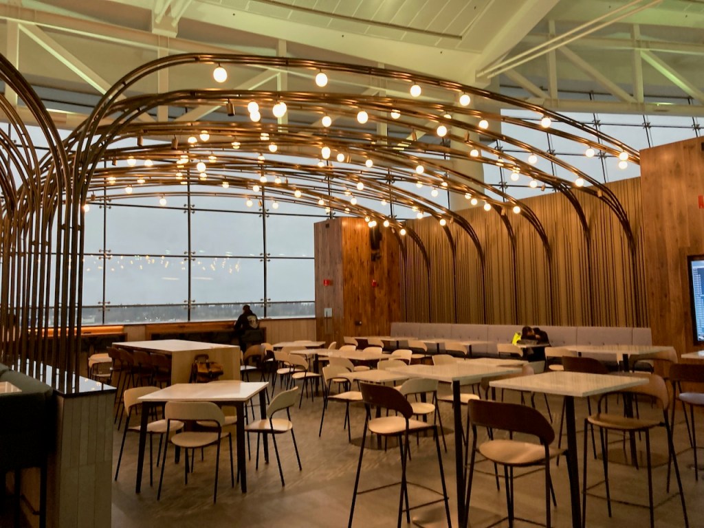 The lounge offered a substantially larger amount of lounge seating as compared to the older location. The tiered seating offered open air views to the lower concourse and retail restaurant area at Seattle Tacoma International Airport.