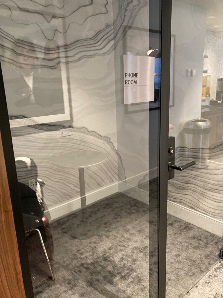 The lounge contained many additional features including a phone room and seating hidden at the back of the lounge. It took a little exploring to locate all the places to sit.