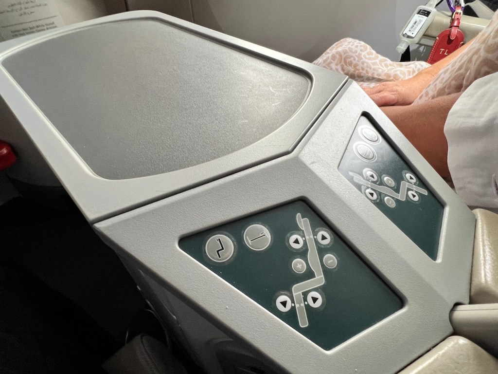 In flight, I also experimented with the fully flat seat. The seat does recline into a fully flat seat that allows for a flat bed for sleeping. While the bed was comfortable for sleeping, it would be awkward for your window partner seat mate to have to get in and out while your bed is in the fully flat seat mode.
