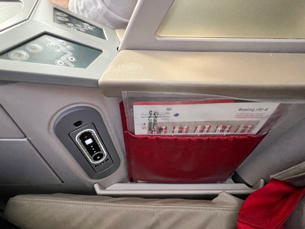 The Royal Jordanian Business Class is set up in a 2 – 2 – 2 configuration. Royal Jordanian installed Collins Aerospace Diamond family Business Class seats. These seats have been around for a while. While they aren’t exactly world class leading anymore, they do recline to a fully flat seat suitable for trans-continental sleeping.
