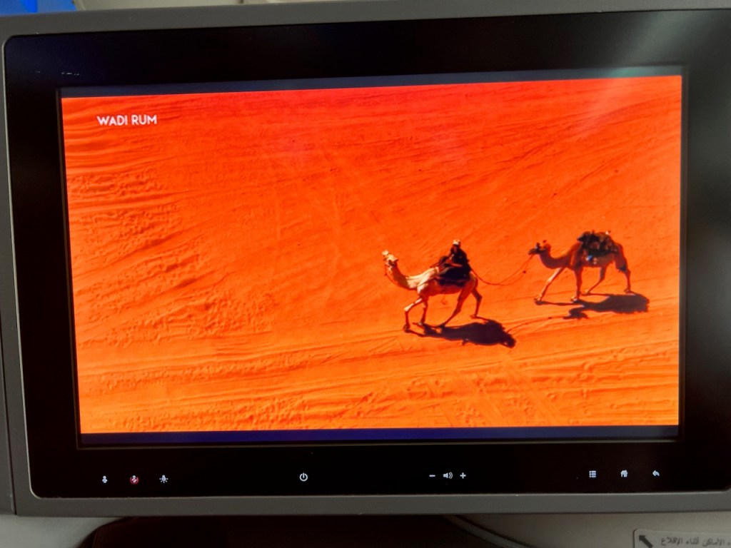 We had an on time departure from Queen Alia International Airport. As we taxied out to Runway 26, we had a computer animated safety video play. While it was unique, it wasn’t particularly memorable.