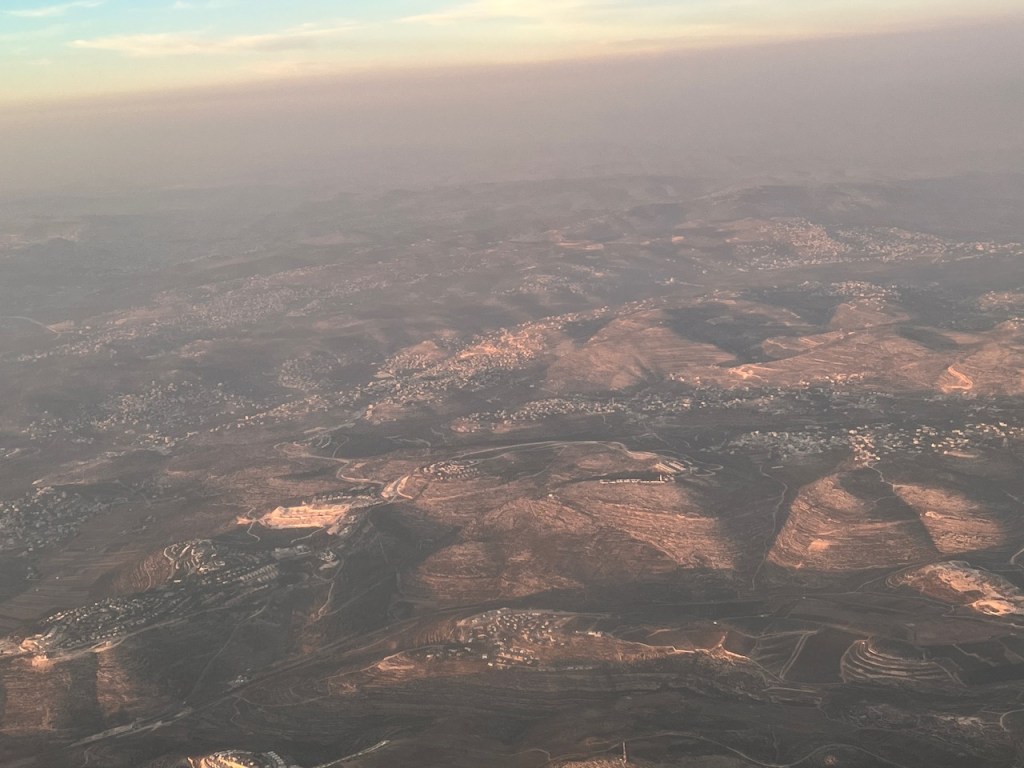 We would end up flying over Israel over the Mediterranean, where we took a northern approach into the Ben Gurion International Airport. We had a beautiful view of the Israeli Coastline, along with a high density view of some of the settlements within Israel.