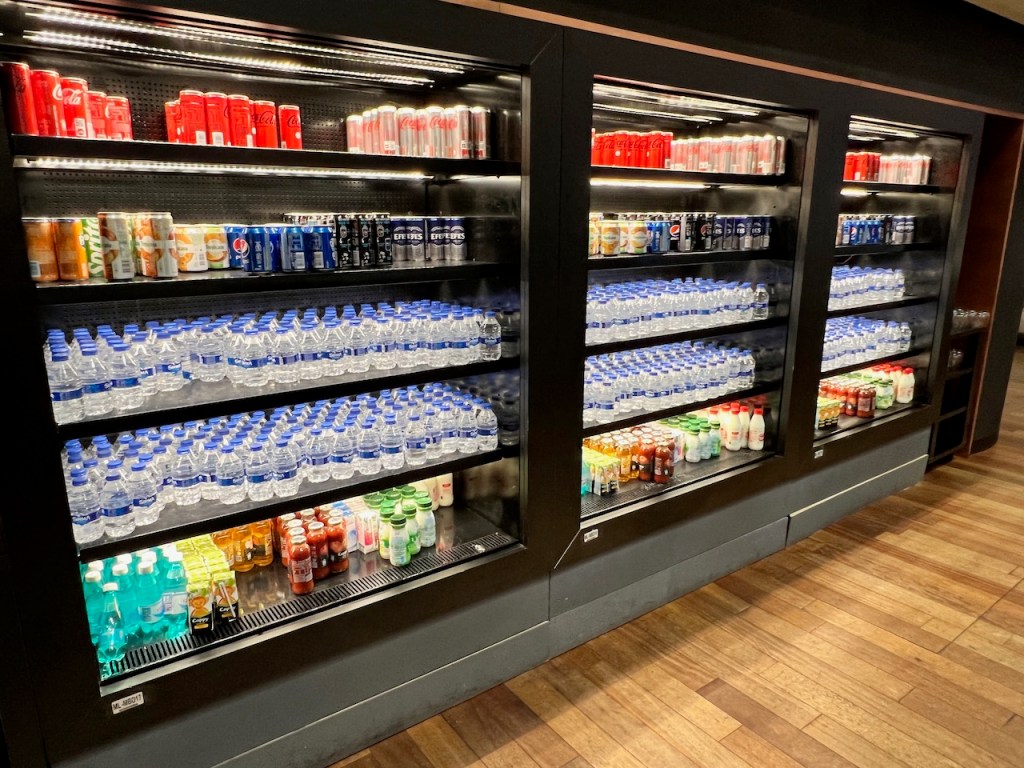 As I indicated earlier, the lounge drink section is offered from large wall sized coolers. This is super convenient from a self serve variety. I did find that these coolers often tend to get cleaned out during period of peak capacity. As a result, when the staff restock them, they don’t tend to get very cold in temperature before they are cleaned out again. The result is a drink that usually just a little bit below room temperature, or perhaps has been in the fridge for maybe one hour. Still, it’s super convenient to be able to collect a bottle of water for your onward flight and not have to worry about consuming the whole thing in the lounge itself.