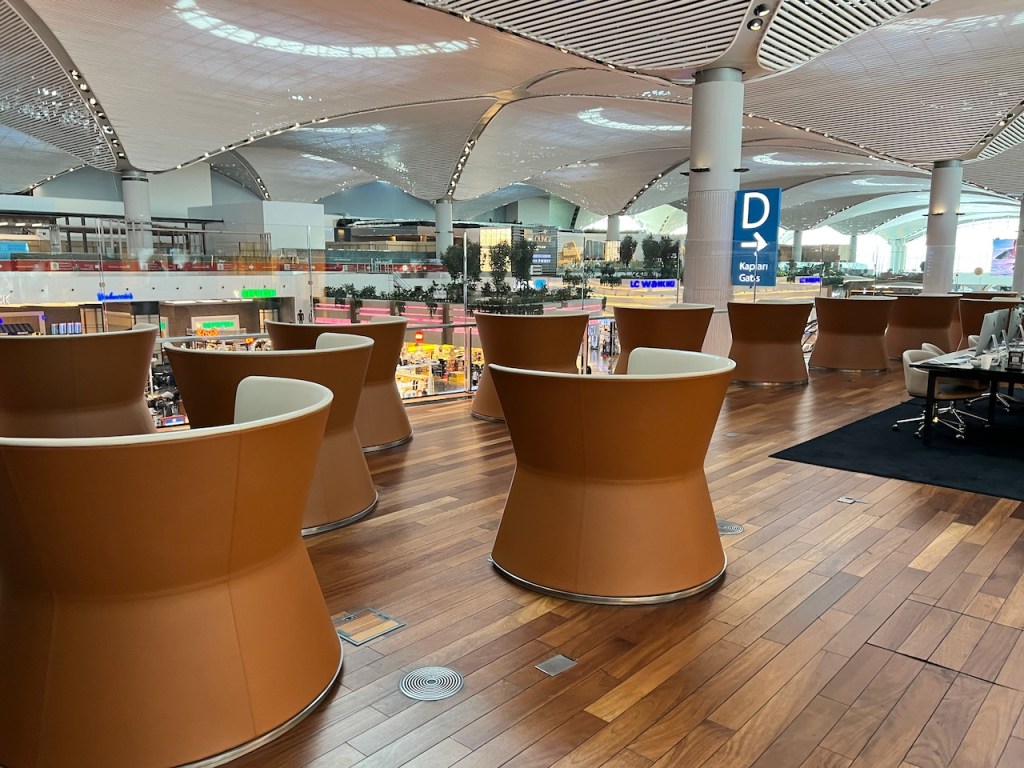 Like in the Turkish Airlines Lounge Business, the mezzanine seats have a retail landscape view over the concourse of the Istanbul International Airport.
