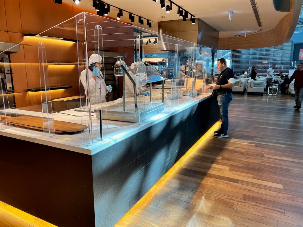 Passing the piano, the central vertebrae of the lounge had the lounge aligned against a food station that ran down the centre of the lounge. It was almost identical to the Turkish Airlines Business Lounge.