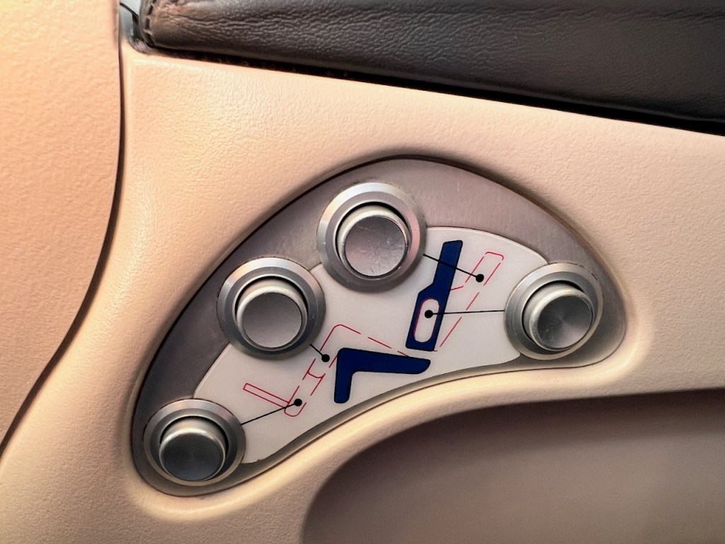 The seat was adjusted by some old school hydraulic seat controls. It is fair to say that a few of the buttons on my particular seat did not actually work. As a result, I didn’t have a recline feature to this flight.