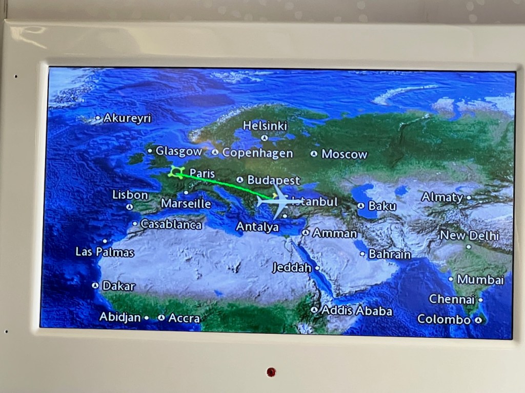 In the mean time, I checked out the flight track for today’s afternoon flight to Paris, France. Our flight track would take us over Serbia, Bosnia Croatia and Italy before arriving to Northern France.