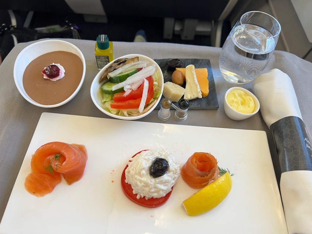 The excellent Do & Co catering was tasty and the cabin ambience was quiet as a result of only nine of us travelling in a cabin fitting thirty six travellers. Aside from some challenges getting our Air Canada Aeroplan miles to post for this flight, it was a reasonable and cost effective flight experience.