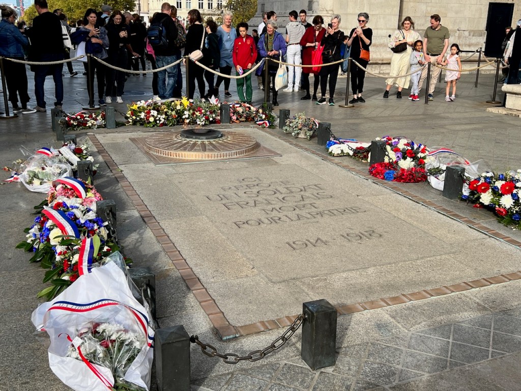 L’Arc de Triomphe also has the tomb of the unknown solder, which has laid on this spot since 1920. It has an eternal flame that is rekindled every evening around 6:30 PM.