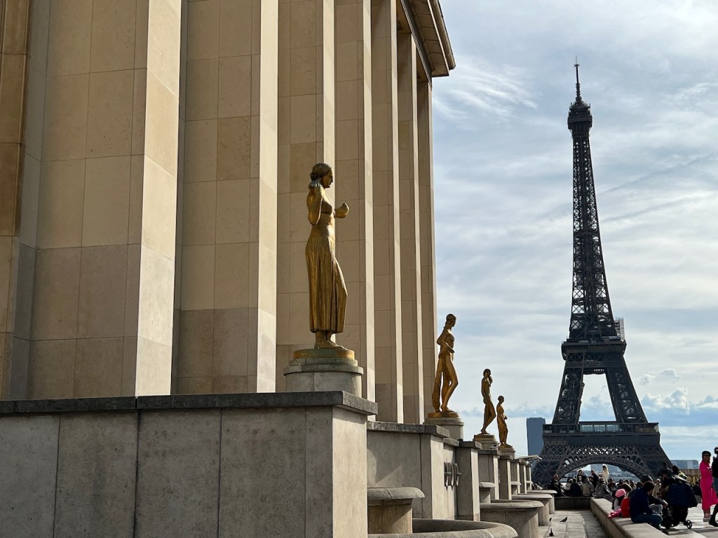 The Palais de Challot was built for the world exposition in 1937. The terrace holds a magnificent view of the Eiffel Tower along with the Trocadero gardens below.