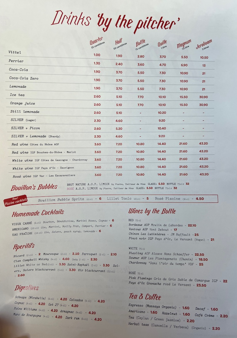 On the Bouillon Pigalle Menu:
