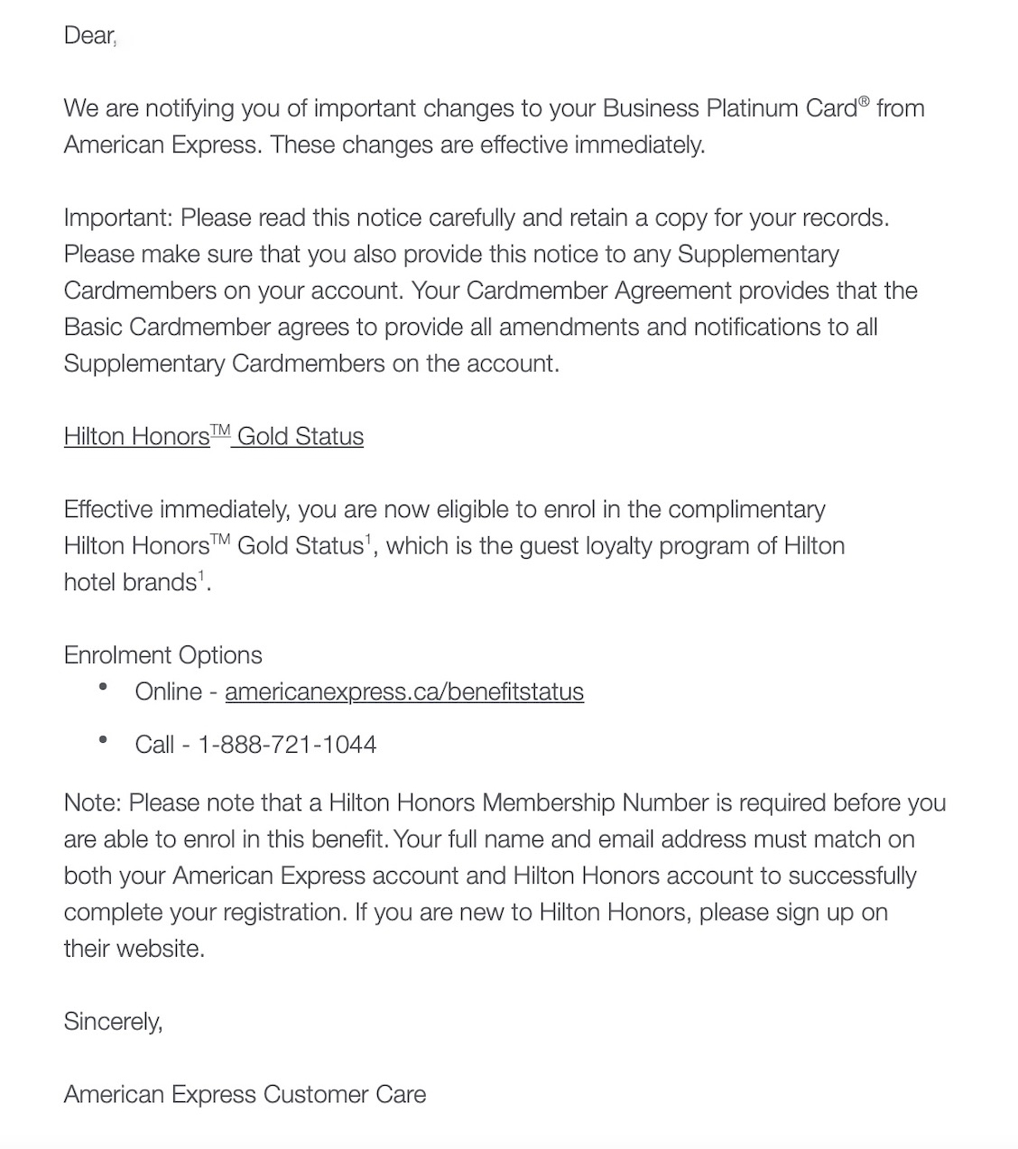 It’s worth mentioning that American Express Platinum Card Holders (personal version) already have complimentary Hilton Honors Gold level access included with their annual fee. This change adds the same benefits for it’s American Express Business Platinum Card Holders.