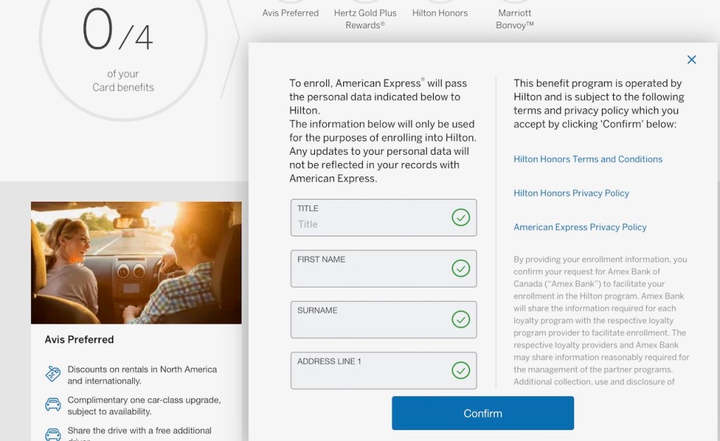 Admittedly, I haven’t signed up for many American Express Platinum Card benefits. I am already a Hertz President’s Circle member through actual rentals. I earned Marriott Bonvoy Titanium Status the hard way, and I don’t usually rent from Avis.