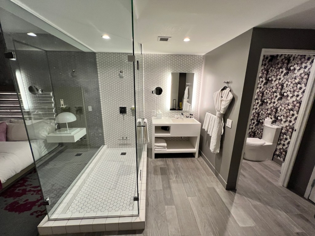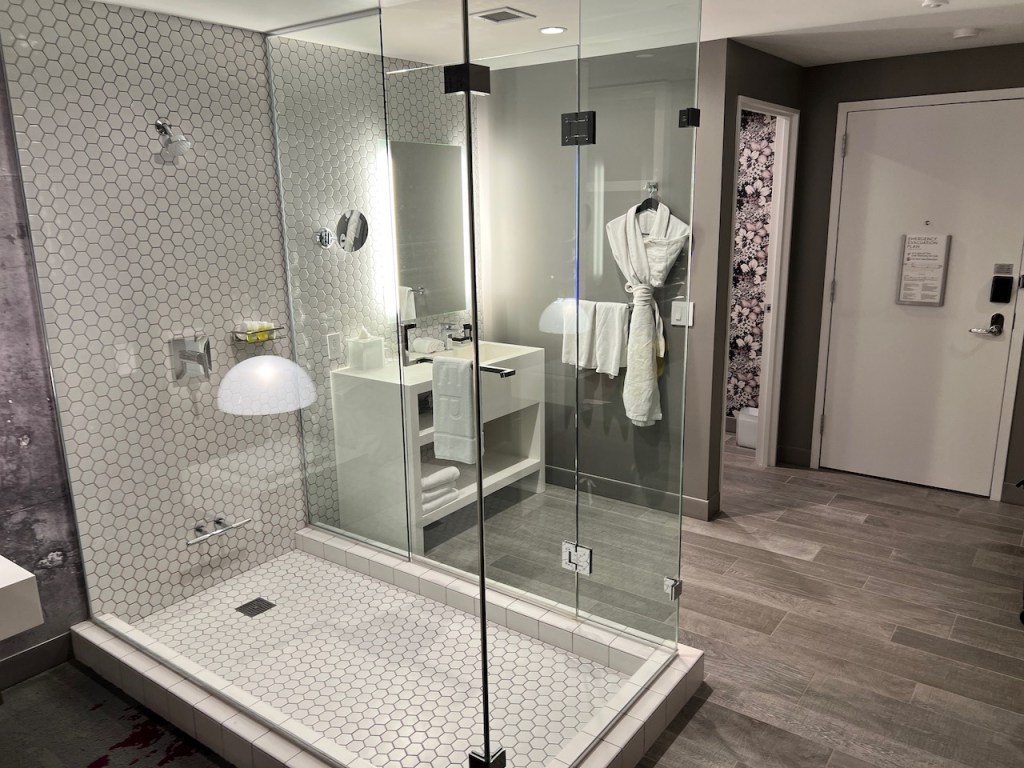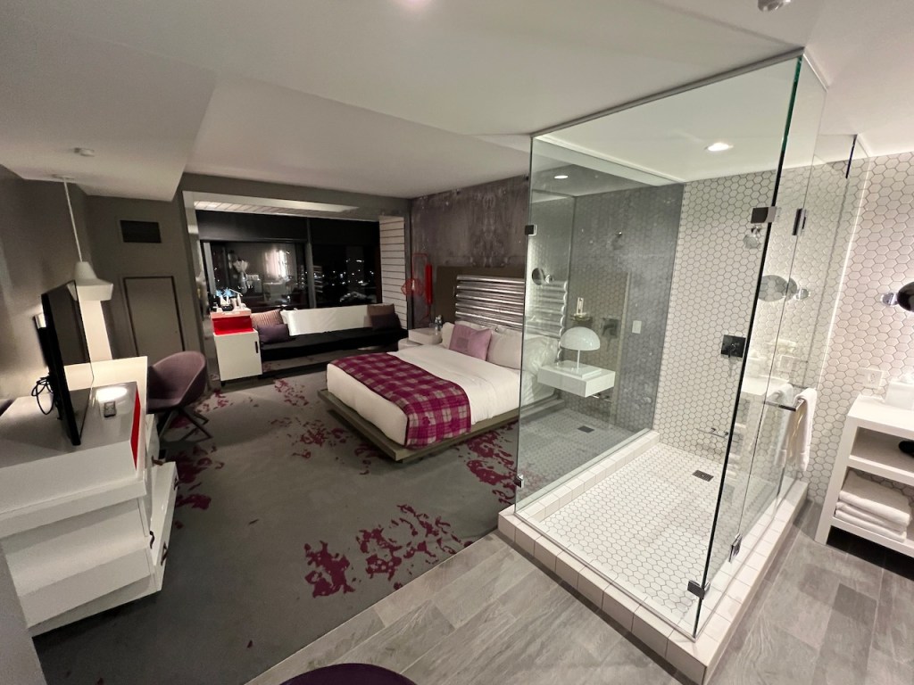Our Fabulous Guest Room was set out in a basic open concept rectangle. The standard rooms (Cozy, Wonderful and Fabulous) rooms are all configured the same way, and appear to be mostly categories based on the location within the hotel and the view. Each of these rooms have a glass shower in the middle of the room.