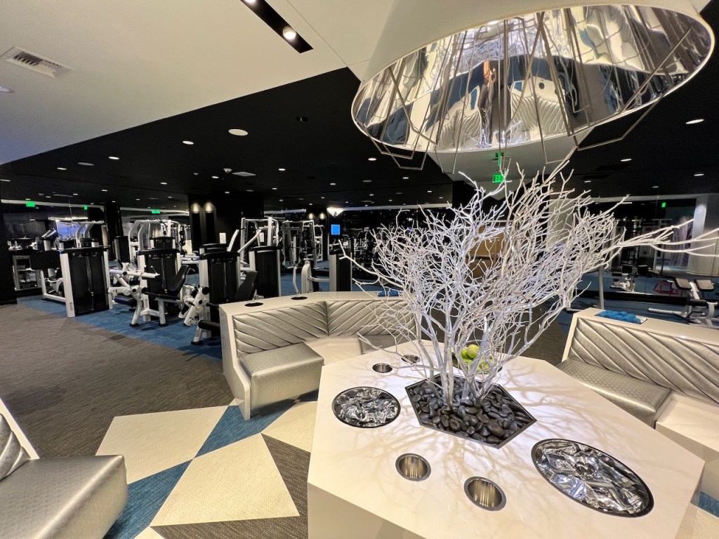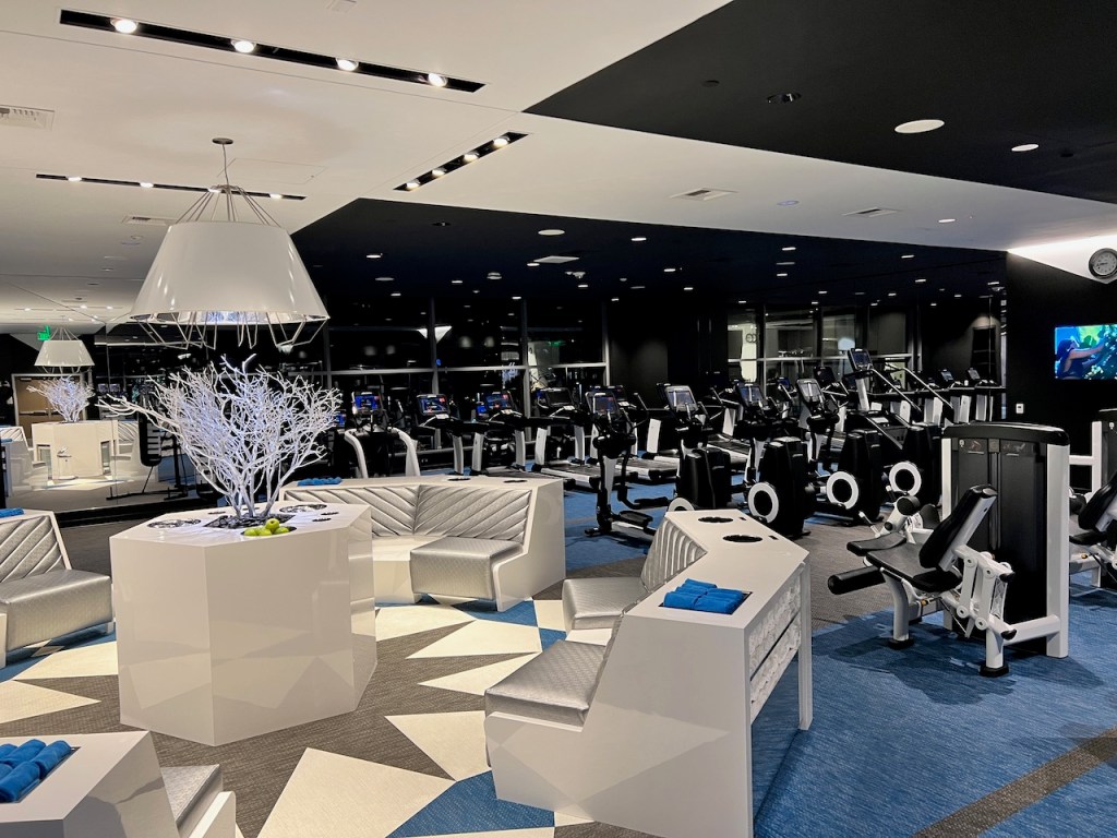 The gym at the W Bellevue features dozens of elliptical machines and dozens of treadmills. The space was so large, it even had it’s own reception lobby of couches and chairs for those waiting for their partners to finish their workouts.