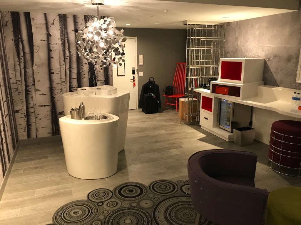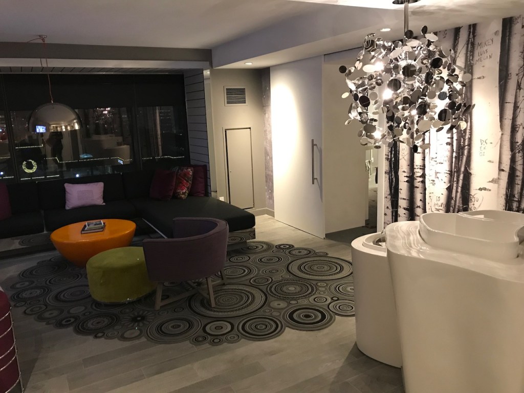 The W Bellevue offers it’s version of The Living Room. It is branded as a Living Room bar and Porch. The W Bellevue’s version of the Living Room wraps its way around corridors surrounding the check in desk. Given the orientation, it offers select seating spaces in a compact environment.